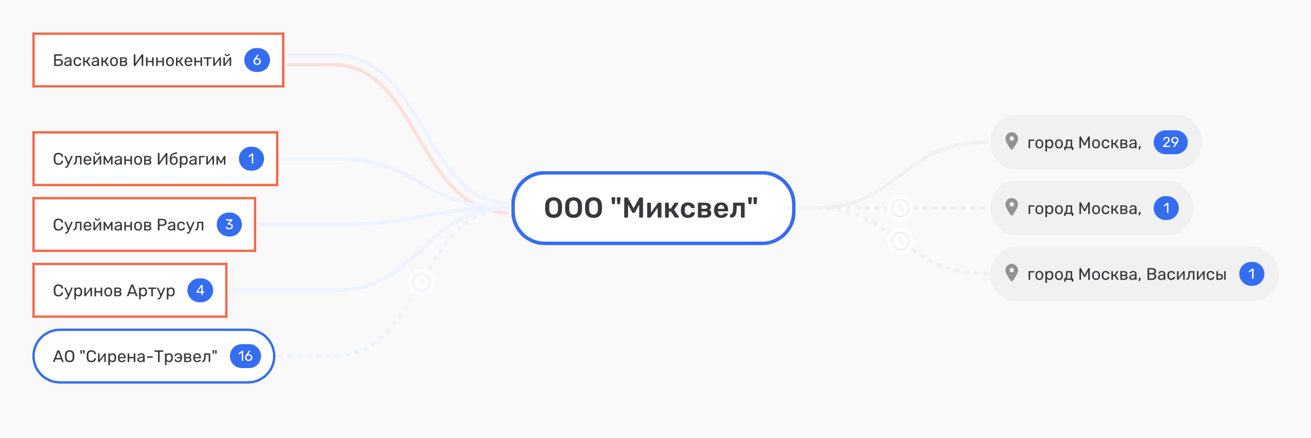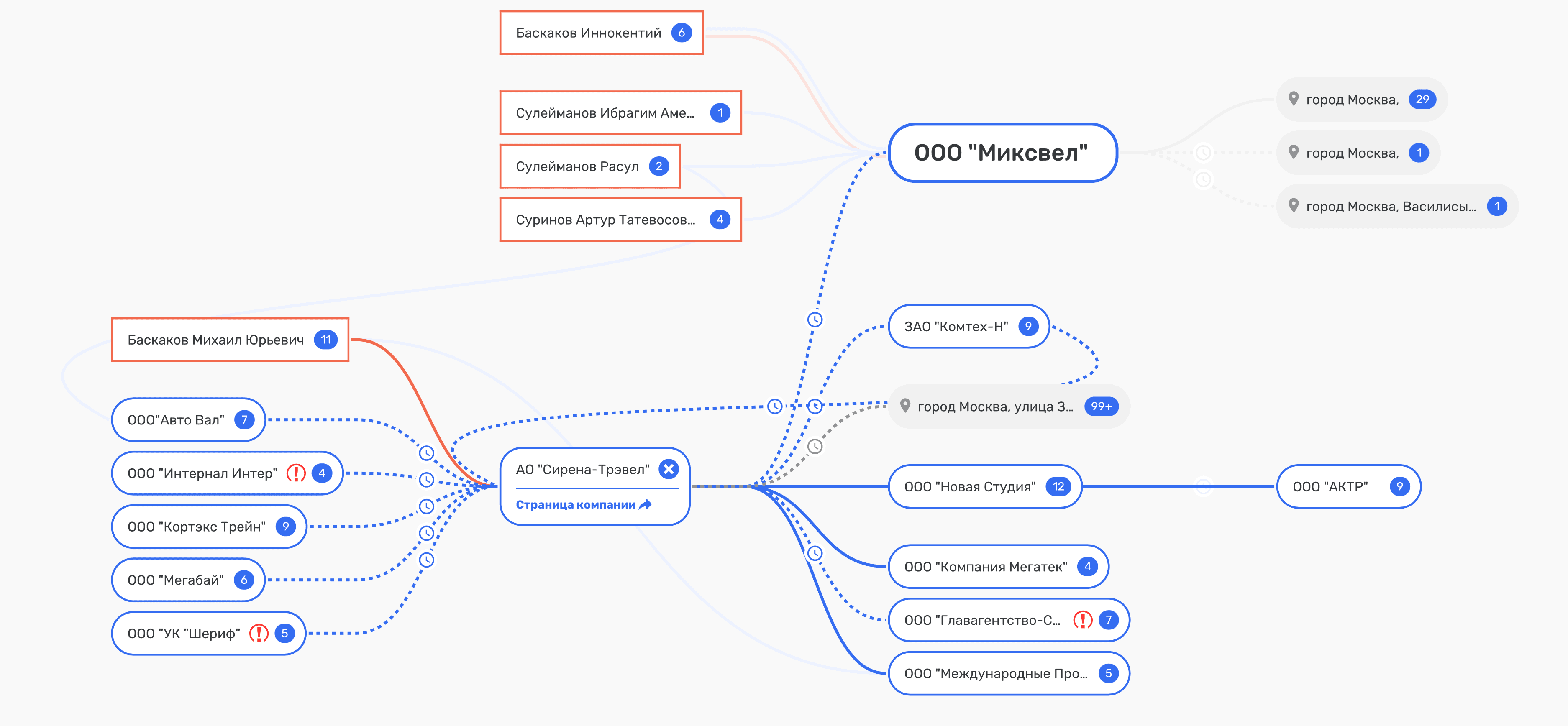 По данным ЕГРЮЛ, до марта 2023 года «Миксвел» контролировалась самой «Сиреной», а затем доли распределились между Иннокентием Баскаковым, Ибрагимом и Расулом Сулеймановыми и Артуром Суриновым.