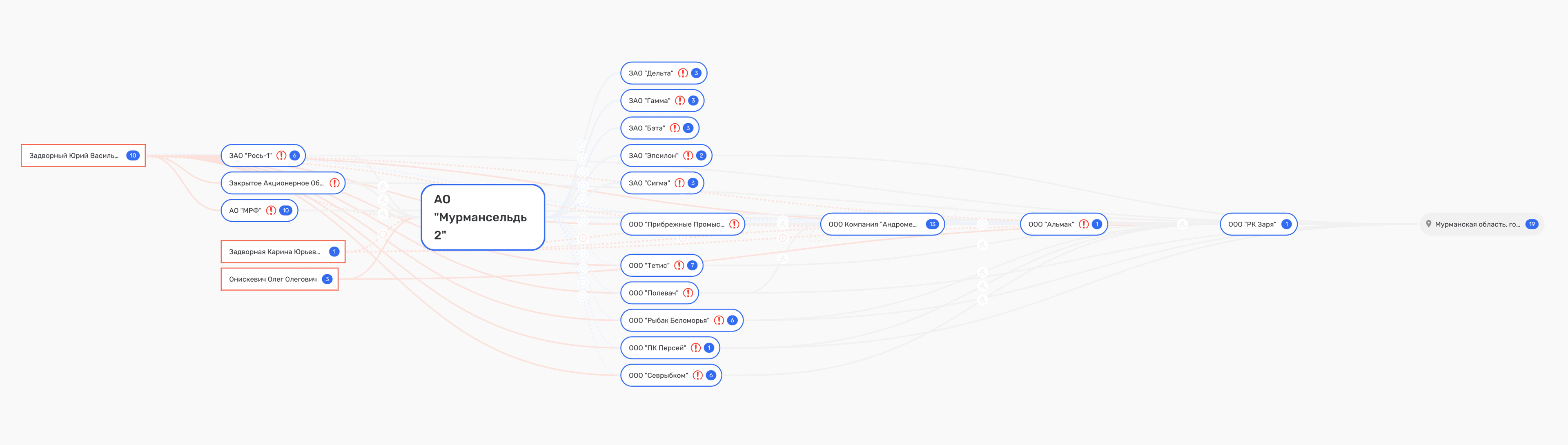 В числе ответчиков по первому иску Генпрокуратуры указаны АО «Мурмансельдь 2», «Рыболовецкий колхоз Заря», ООО «Компания Андромеда», Росрыболовство и физлица, связанные с предприятиями: Юрий Задворный, его супруга Карина и дочь, а также партнёры Андрей Борецкий и Владимир Каприн. Третьими лицами выступают — ФАС и Минсельхоз. Выручка «Зари» за 2024 год — 1,3 млрд руб., «Мурмансельди 2» — 2,2 млрд руб.