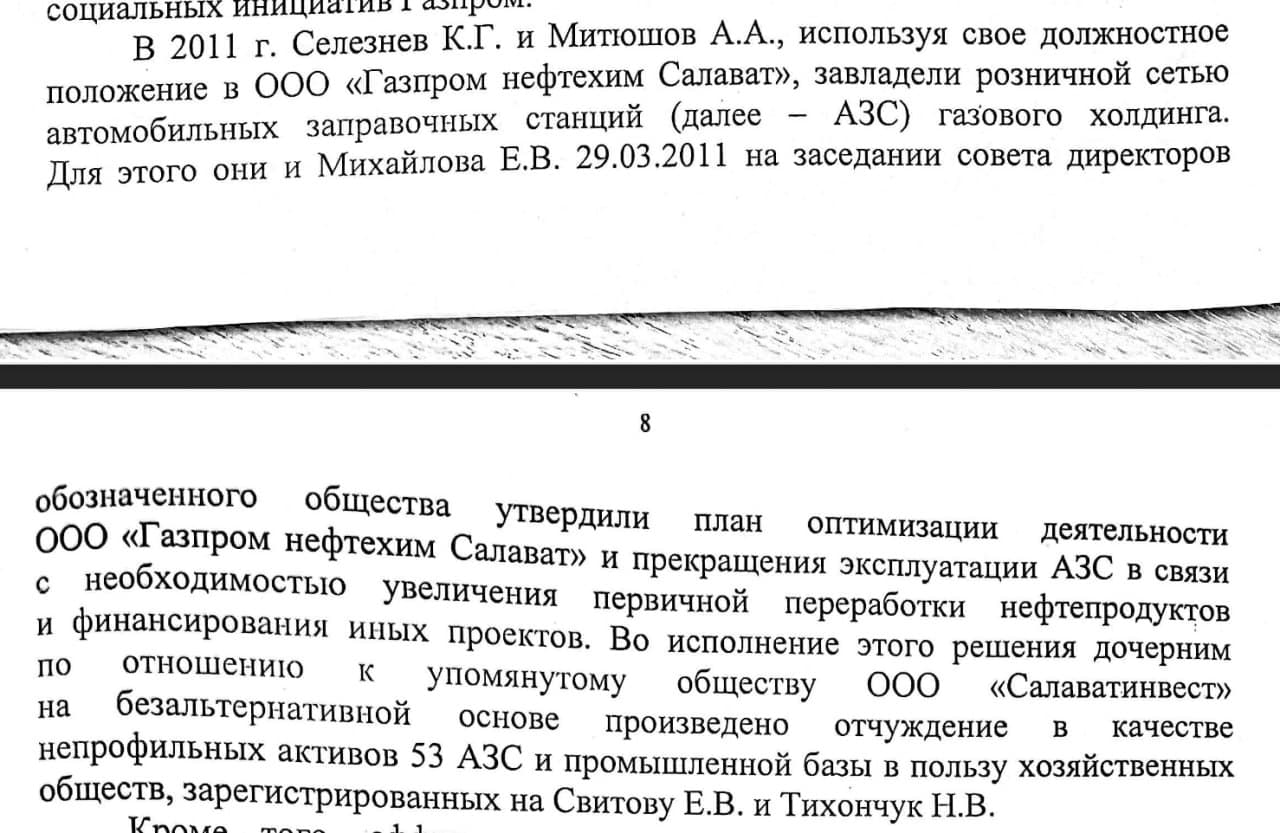 Особое внимание суд уделил периоду 2011–2024 годов, когда в структуре «Газпрома» ключевые решения о распределении подрядов принимались под прямым контролем Селезнёва и Михайловой. Именно тогда, по данным прокуратуры, происходил основной вывод активов из «Газпром нефтехим Салавата». Цитата из судебного определения: