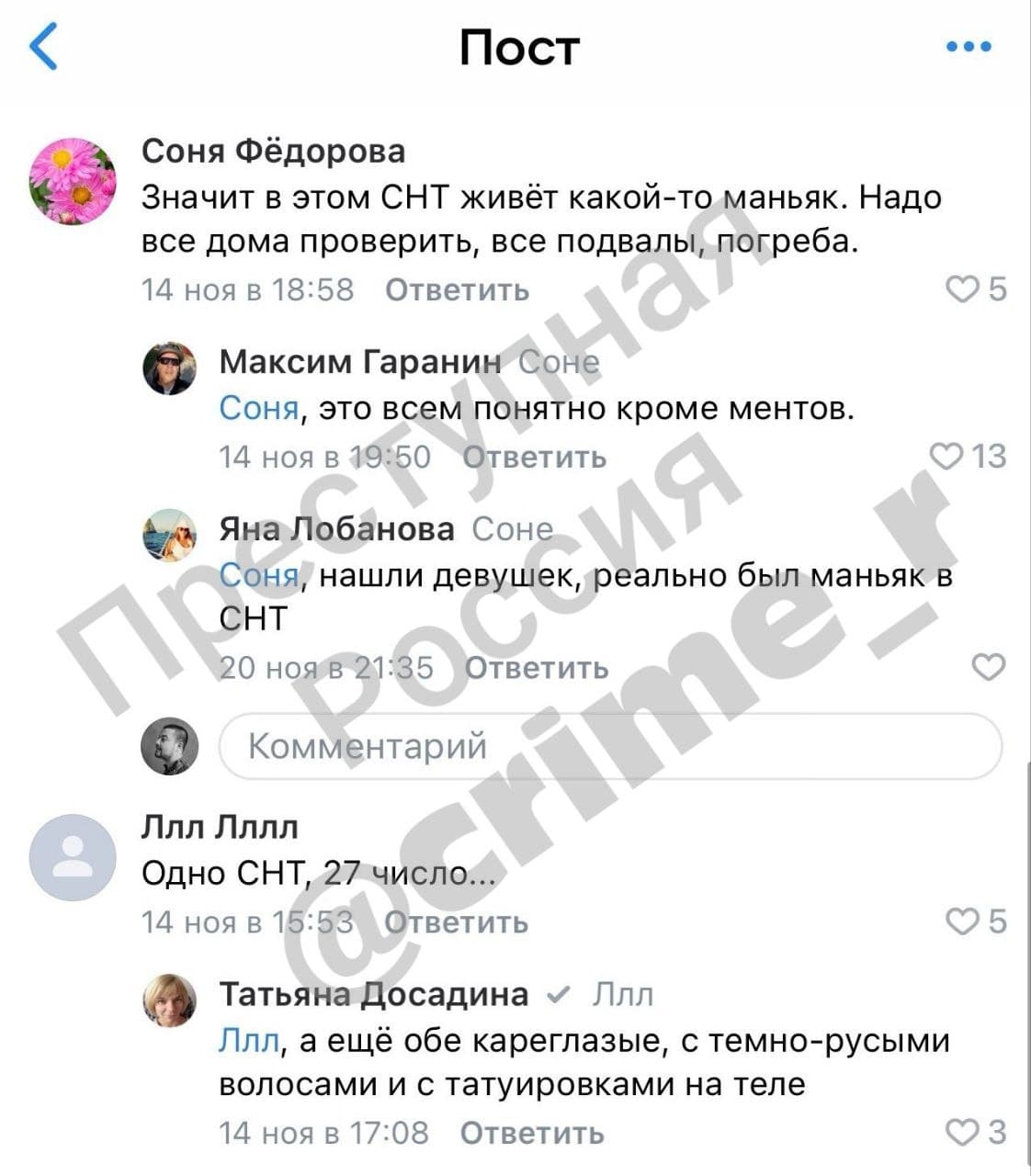 Рассказываем всё по порядку. Как это часто бывает в МВД, первое заявление о том, что пропал человек, несколько месяцев пылилось в полиции. Ещё летом женщина сообщила, что в Богородском районе пропала её взрослая дочь. Но материал проверки по заявлению был направлен из Электроуглей (город в Богородском г. о.) в Королёв по месту жительства пропавшей и там благополучно канул в лету.