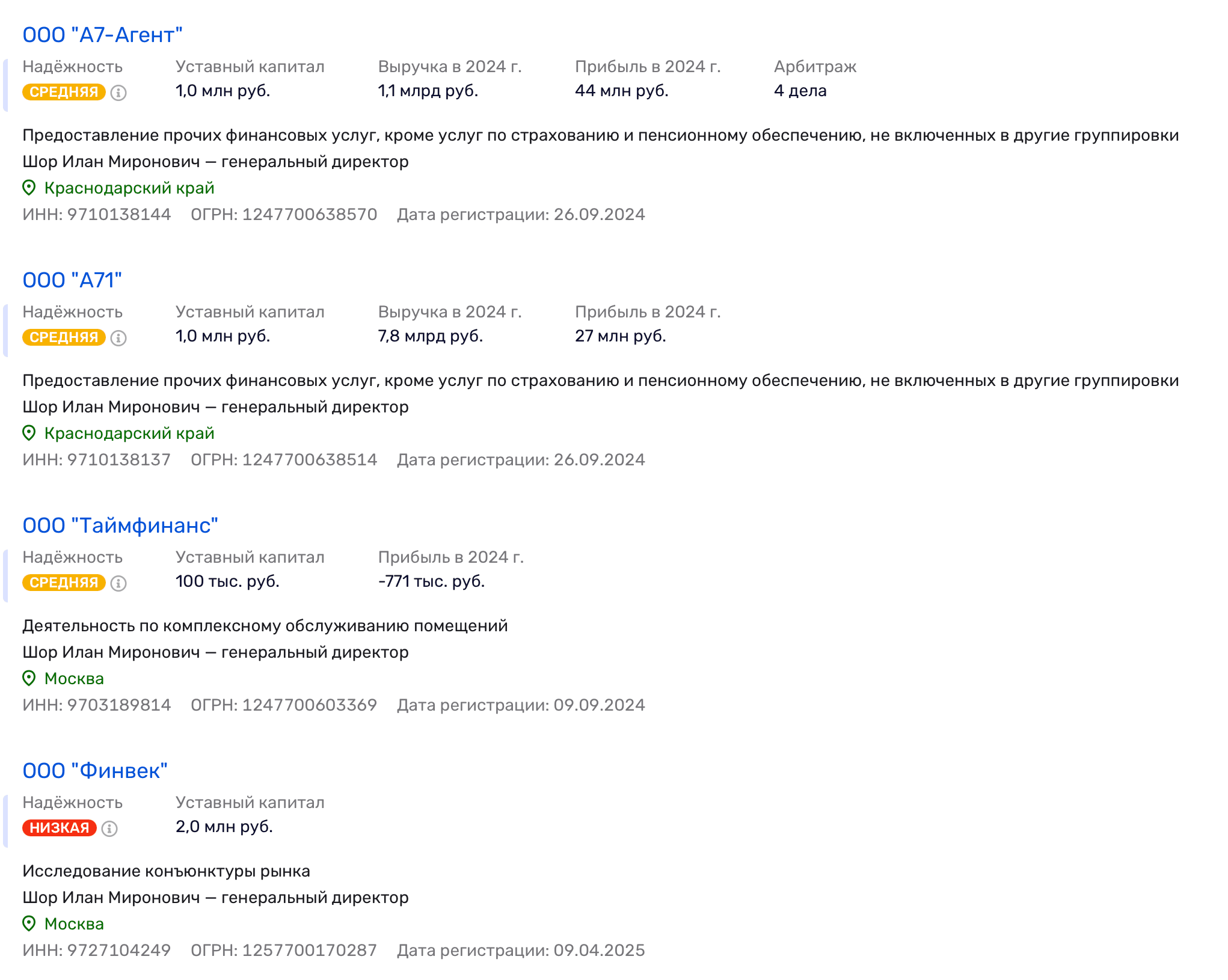 За этим токеном стоит не крипто-стартап, а инфраструктура «теневых» расчётов для обхода антироссийских санкций. A7A5 создан российской компанией ООО «А7», зарегистрированной в сентябре 2024 года в Геленджике; её владельцы — молдавский бизнесмен Илан Шор и российский Промсвязьбанк. Финансовые показатели ООО «А7» за 2024 год демонстрируют выручку 3,7 млрд рублей и чистую прибыль 2,4 млрд рублей. В документах OFAC прямо говорится, что A7 и её дочерние структуры (ООО «А71» и ООО «А7-Агент», обе зарегистрированы 26 сентября 2024 года в Геленджике) «принадлежат» на 49% Шору и на 51% Промсвязьбанку.