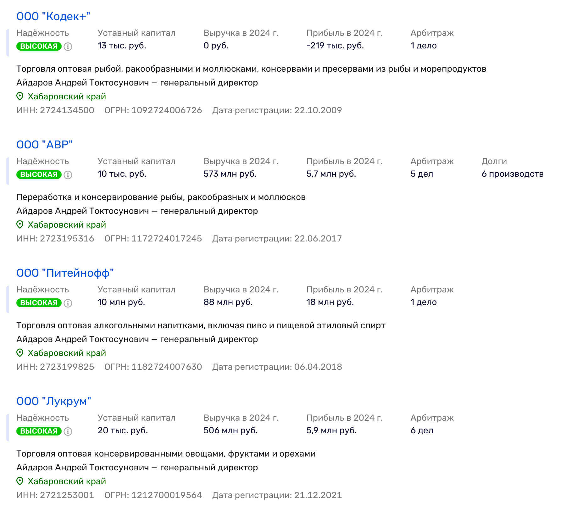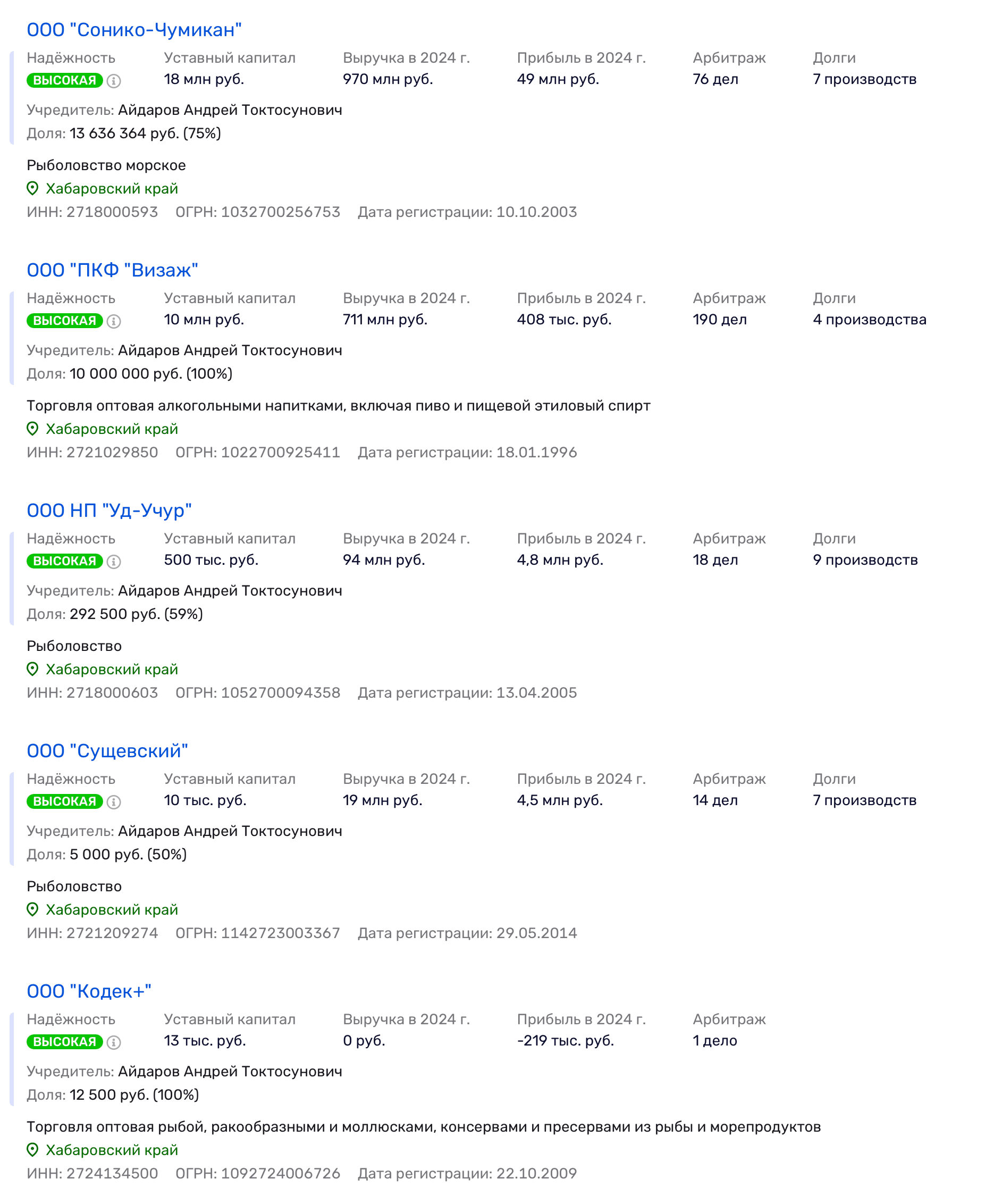 Всё это не возникает на пустом месте: «паспортная» конструкция идёт по рыбной отрасли уже второй год. Так, 21 марта 2024 года Арбитражный суд Приморского края удовлетворил иск Генпрокуратуры к «крабовому королю» Олегу Кану и другим ответчикам на 358,7 млрд руб. — ущерб водным биоресурсам.
